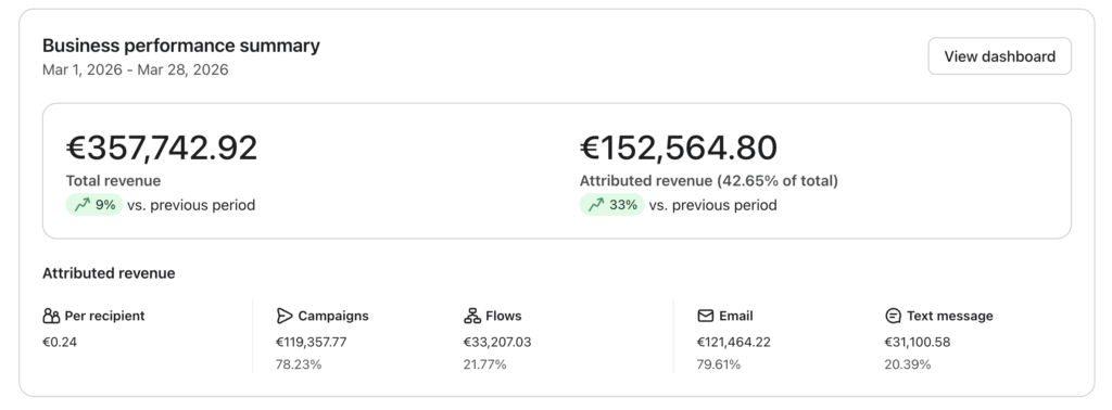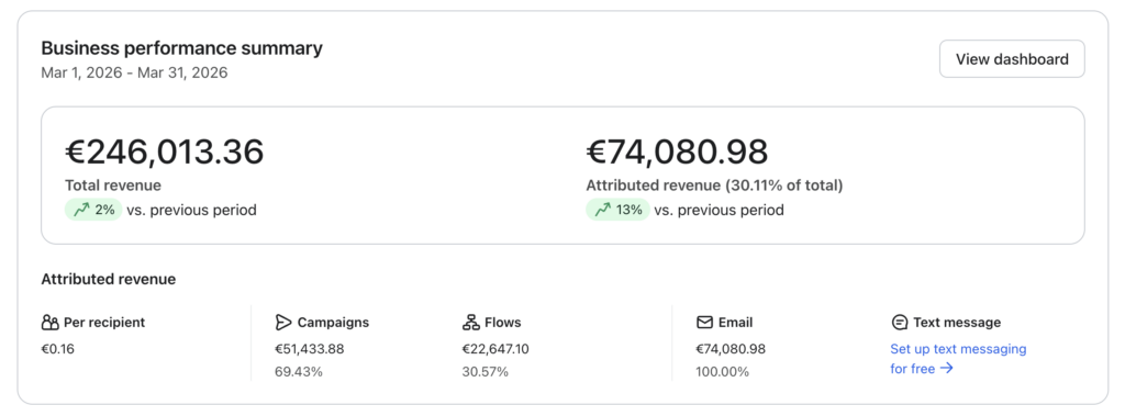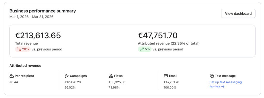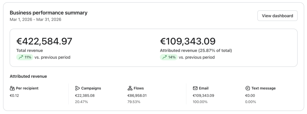 Vous commencerez à voir des résultats dans les 15 jours suivant la mise en place des différentes séquences d'emails automatisées et l'envoi de la première campagne de newsletter. Nous prenons généralement 3 à 7 jours pour intégrer tous les flux principaux (abandon de la commande, série de bienvenue, abandon de la navigation...), puis nous commençons à envoyer des campagnes directement.